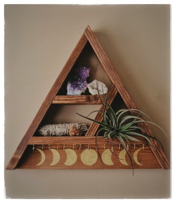 Un refugio de poder donde tus amuletos, cristales y objetos energéticos encuentran su lugar sagrado. Cada altar, trabajado a mano en madera de pino, está inspirado en la geometría sagrada y pensado para elevar la vibración de tu espacio.